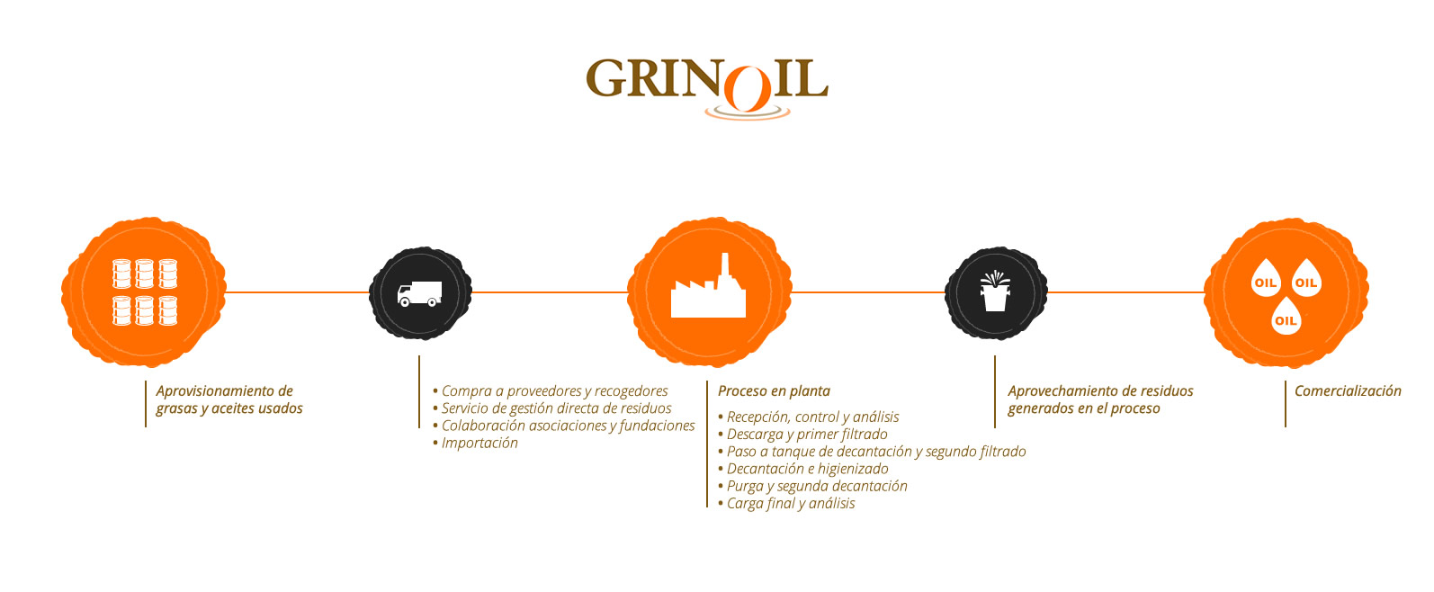 • Grinoil garantiza que trabaja cada día por mejorar y perfeccionar el proceso de gestión y valorización, estudiando y aplicando todas las mejoras posibles, tanto humanas como técnicas.